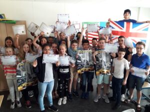 Alle Teilnehmer mussten zuvor dafür 45 Multiple-Choice-Fragen zu verschiedenen Bereichen der englischen Sprache und Landeskunde beantworten.