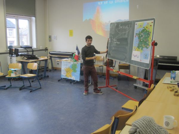 Für die 8a/b/d sowie für die Klasse 9d/e bedeutete dies einen Französischunterricht der besonderen Art. Ob es darum ging, französische Städte richtig einzuordnen oder Mini-Theaterstücke auf Französisch zu improvisieren, dank der lockeren und kreativen Art von Stéphan Allanic gab es durchweg viel Spaß, und das alles auf Französisch!