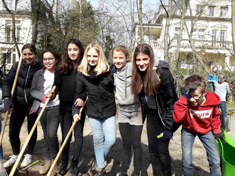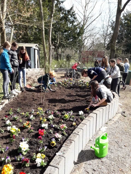 Our classes 6b/6d are doing a project for the environment during the English lessons. We are putting our school garden in order. We first started with collecting all the rubbish in the garden. Then we began to loosen the beds and soil. After that we finally could plant the first flowers, sow some seeds of vegetable and make a herb bed. Then we had to water all that. It was all fun and we had a great time working on our project.