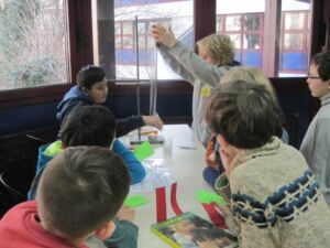 Die Viertklässler konnten zum Beispiel erfahren, was mit einem Schokokuss im Vakuum passiert (und ihn natürlich anschließend vernaschen!), wie man sehr einfach selbst Raketen herstellen und damit schießen kann, wie sich Vögel in der Luft halten oder wie viel Luft sie selbst ein- bzw. ausatmen.