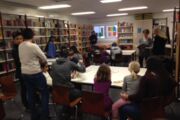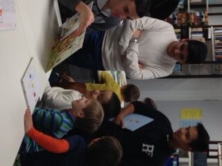 Dann ging es weiter in die Bibliothek, wo sich die gesamte Klasse als individuelle Vorleser für die „Schuwidus“ anbot. Das Angebot wurde gerne genutzt, wobei die kleinen Gäste unterschiedlich vorgingen: manche blieben bei ihrem „Vorleser“ und wechselten nur die Bücher, manche ließen sich unterschiedliche Bücher von verschiedenen Neuntklässlern vorlesen; ein kleiner Gast hatte sich jedoch so sehr in ein Buch verliebt, dass er sich dieses von verschiedenen Vorlesern ganze sechs Mal vorlesen ließ.